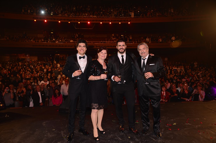 A las puertas del teatro se vendían a primera hora afiches de Sandro como si el ídolo fuese a actuar de un momento a otro y en la alfombra roja desfilaron parte de los actores que dieron vida al relato televisivo: Agustín Sullivan , Marco Antonio Caponi y Antonio Grimau -que encarnaron a Roberto Sánchez en las distintas etapas de su vida-; Isabel Macedo y Marina Bellati (en la piel de Daniela y Mónica, dos de los amores del Gitano); Muriel Santa Ana (en el papel de Olga); Luis Machín (que interpretó a Oscar Anderle, representante del artista), y Paula Ransenberg y Jorge Suárez (sus padres). Lali Espósito y la China Suárez, también mujeres del artista en la ficción, no pudieron asistir “por compromisos previos”, lo mismo que Calu Rivero , que se encuentra en Nueva York.
