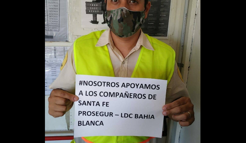 Durante la protesta, la organización sindical denunció que a los vigiladores de Prosegur “los tienen haciendo guardias en garitas que no reúnen las condiciones necesarias para trabajar, mientras que en algunos servicios los/las guardias están hasta 12 horas sin baño; y (la empresa) no entrega el uniforme en tiempo y forma”, entre otros incumplimientos.