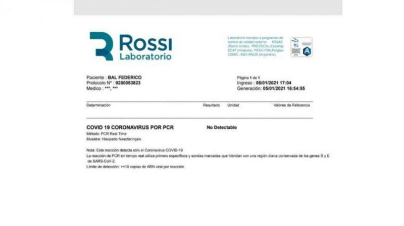 El diagnóstico del test PCR del hijo de Carmen Barbieri , según informó Adrián Pallares, dio negativo. “Buena noticia para Federico Bal, dio #COVID19 negativo . Alivio , con sus temas de salud hubiera sido algo para prestar atención. Gracias a Dios negativo“, lanzó el periodista llevando alivio en Twitter, junto al resultado médico adjunto que aclara que es “no detectable”.