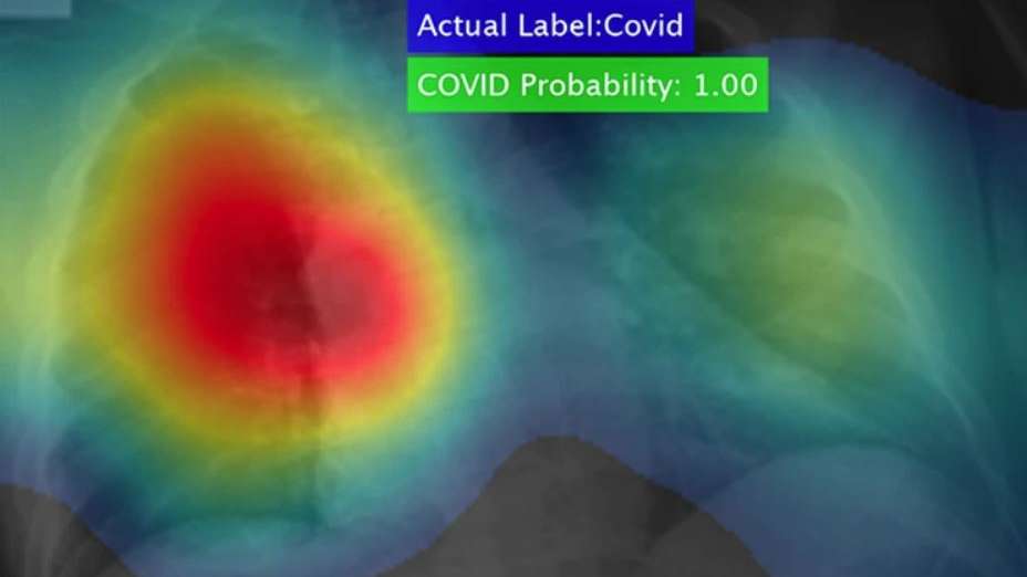“Lo que eso significa es que el software ha decidido que algo está ahí, en esa región en particular, y ese algo en particular cumple con sus criterios para clasificar la imagen como si tuviera marcas de COVID-19, en contraposición a no tener COVID-19, o en contraposición a tener otra enfermedad pulmonar”, explicó Narayanan.