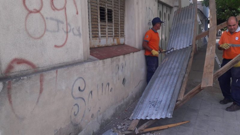 Una construcción de chapas y maderas que se había levantado en una obra se desmoronó este miércoles en Villarino 285.