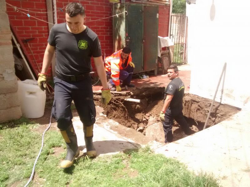 Una mujer sufrió lesiones este jueves luego de que desmoronara un pozo ciego que estaba en el patio de una casa ubicada en San Lucas 5575.