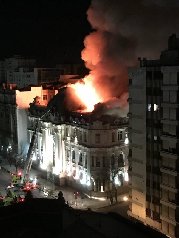 El fuego comenzó en la terraza del edificio de tres pisos ubicado en la esquina Estomba y Moreno. El personal presente a esa hora alertó sobre la situación. Hasta el momento, no hay reporte de heridos.