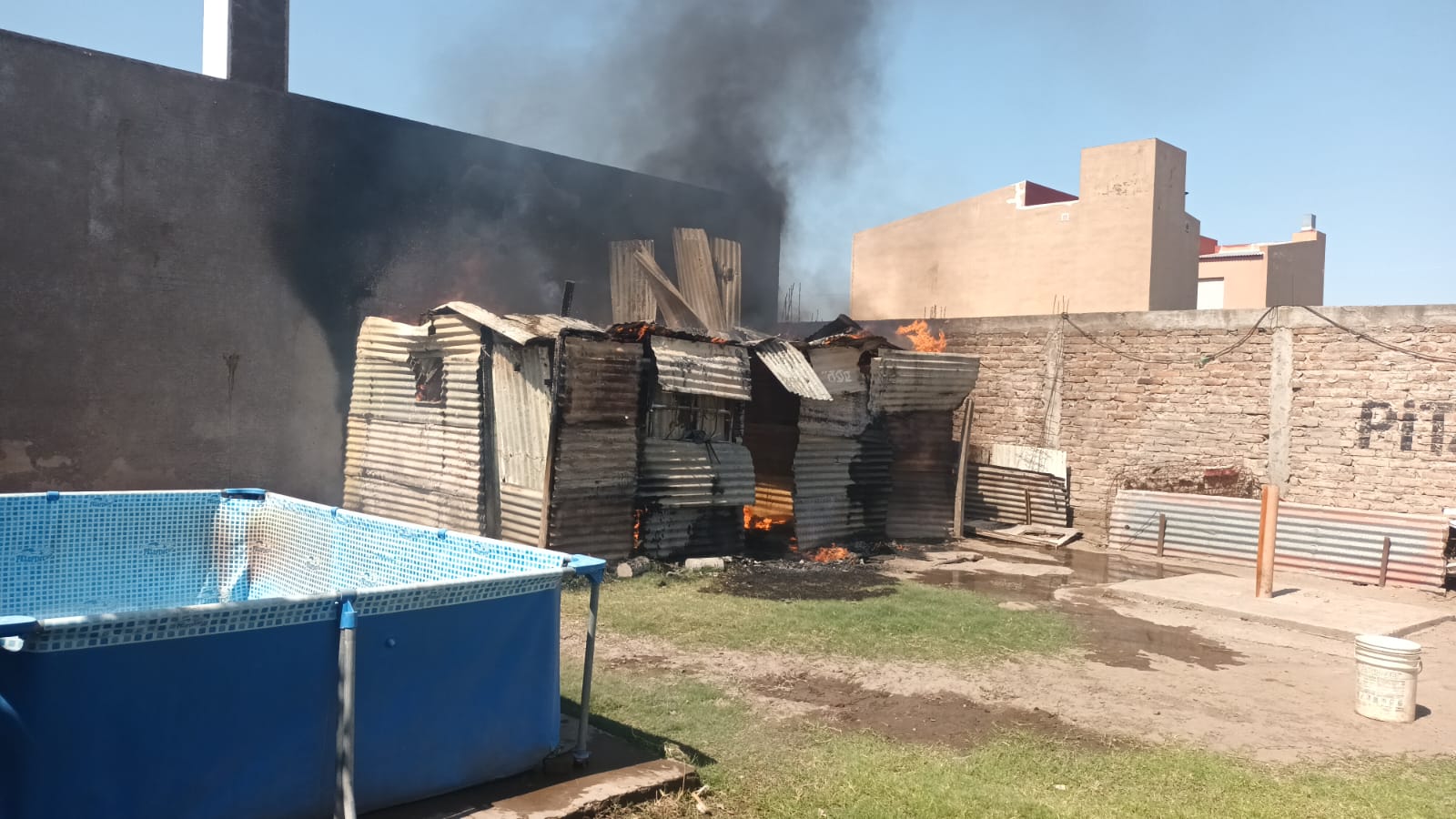 Un incendio se produjo este lunes a la mañana en un galpón de chapa ubicado en la parte de atrás de un domicilio de Ingeniero Luiggi 2070.