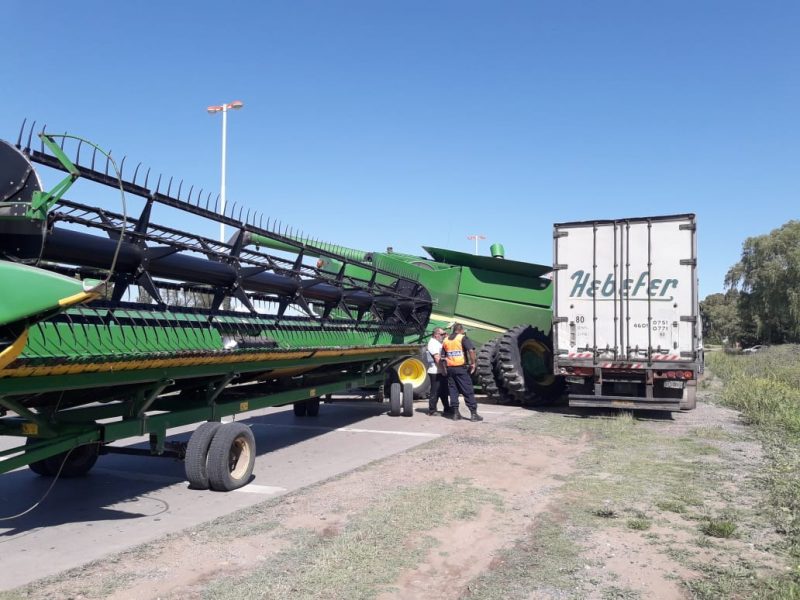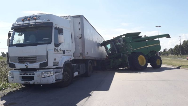Se le salieron dos ruedas a una cosechadora e impactaron contra un camión
