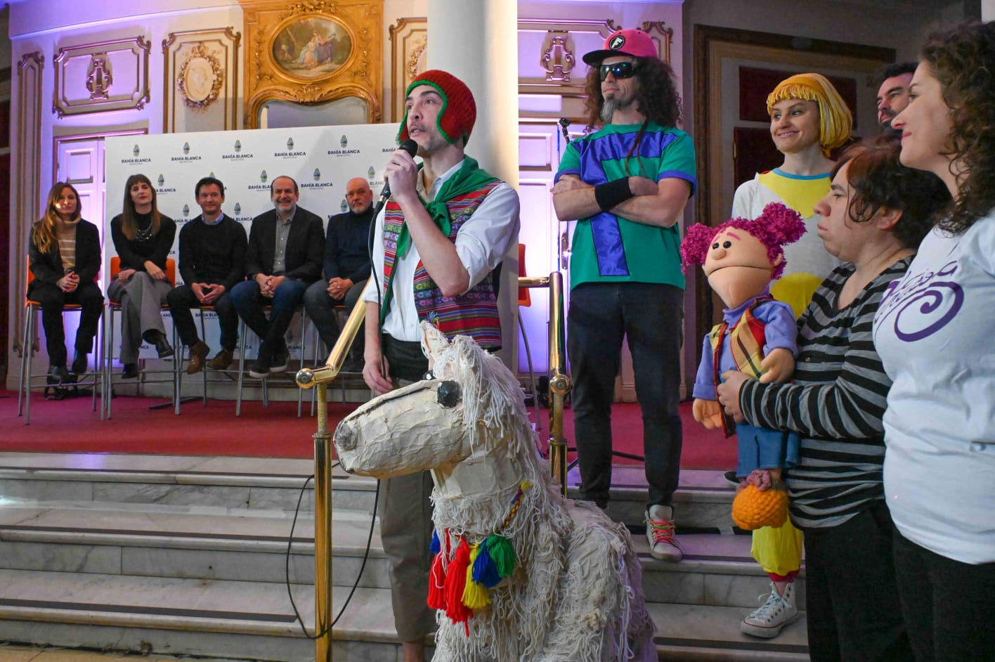 El intendente Federico Susbielles presentó la grilla acompañado por Santiago Mandolesi Burgos, presidente del Consorcio de Gestión del Puerto; Marcelo Díaz, en representación del Instituto Cultural; las directoras de Turismo, Karina Sánchez y de Bahía Hub, Guillermina Esmoris y artistas locales.