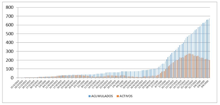 En total, hay 675 confirmados, de los cuales 202 activos, 453 recuperados y 20 fallecidos.