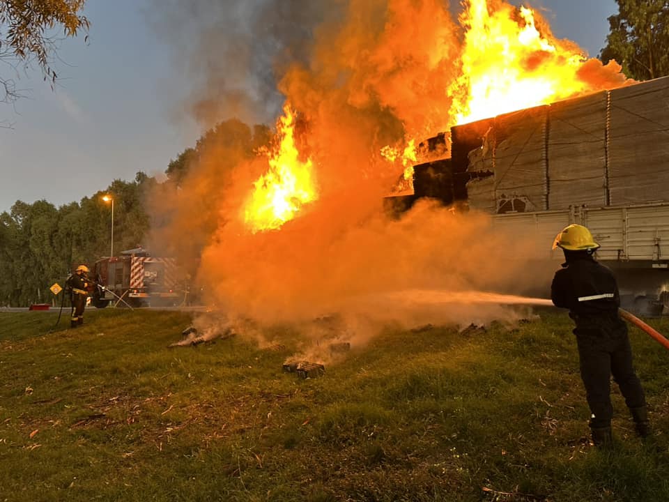 Según publicó el sitio Villarino Informa, el siniestro se produjo cuando explotó una cubierta del acoplado del transporte.