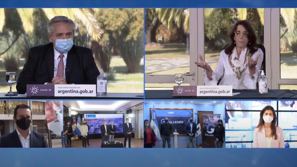 Durante el acto, el Presidente se comunicó con los intendentes de Córdoba, Martín Llaryora; San Luis, Sergio Tamayo; Río Gallegos, Pablo Grasso; y Salta, Bettina Romero.