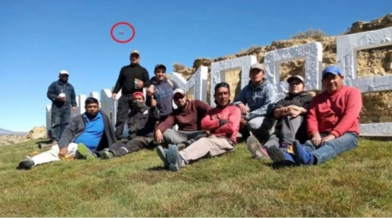 Un grupo de trabajadores se encontraba el pasado viernes 9 de octubre en El Valle del Covunco, en la localidad neuquina de Mariano Moreno. Allí, colocaban el nombre del distrito en un monte. Cuando terminaron su trabajo, posaron orgullosos para una foto. Sin embargo, el cartel y sus caras de felicidad se vieron opacadas por la presencia de un objeto volador no identificado (OVNI).