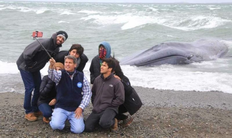 Se suben a una ballena muerta para sacarse fotos y hasta la rayan para dejar un mensaje