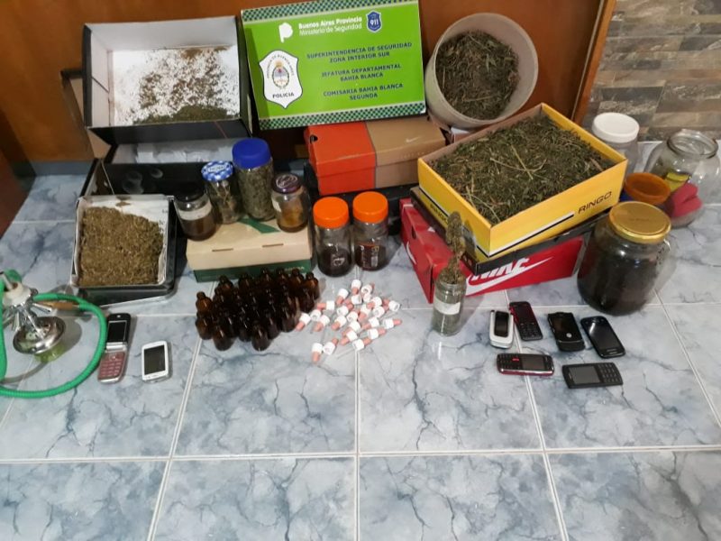 Los uniformados también encontraron nueve teléfonos celulares y casi treinta frascos con aceite de cannabis, los cuales eran comercializados por 2800 pesos.