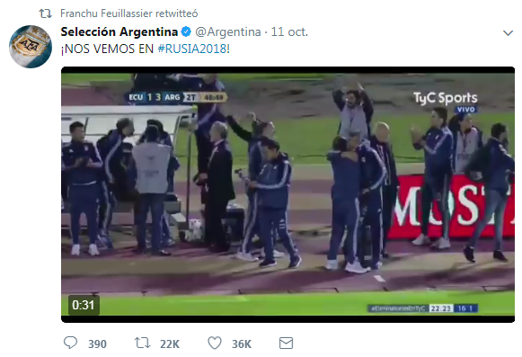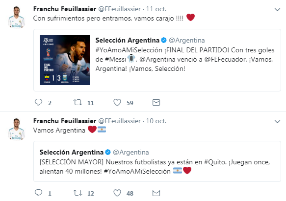 Sin embargo, en los últimos días, el jugador no sólo tiene en su perfil de Twitter la leyenda de “Jugador Argentino en Real Madrid”, sino que ha dado RT y expresado su felicidad por la clasificación de la Selección al Mundial de Rusia 2018.