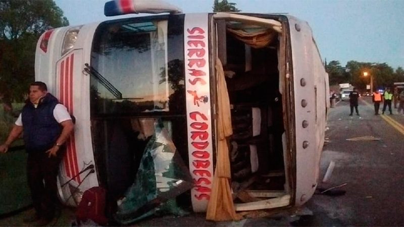 En ese lugar, por causas que se tratan de establecer, un ómnibus de la empresa “Sierras Cordobesas” con 31 pasajeros a bordo y un camión chocaron entre sí y volcaron.