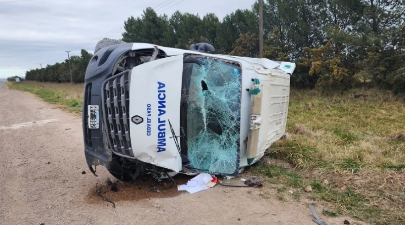 Fuentes policiales indicaron que “a raíz del violento impacto la ambulancia volcó a un costado de la cinta asfáltica mientras que el otro vehículo terminó a pocos metros del lugar”.