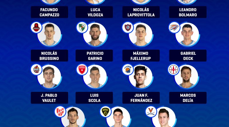 Los citados son los bases Facundo Campazzo (Denver Nuggets), Nicolás Laprovittola (Real Madrid) y Luca Vildoza (New York Knicks); los escoltas Nicolás Brussino (Zaragoza) y Bolmaro (Barcelona); los aleros Gabriel Deck (Oklahoma City Thunder), Patricio Garino (Zalgiris Kaunas), Vaulet (Manresa) y Máximo Fjellerup (San Lorenzo); los ala pivotes Luis Scola (Varese) y Fernández (Fuenlabrada); y los pivotes Marcos Delia (Trieste), Tayavek Gallizzi (Instituto), Berra (Obras Sanitarias) y Cáffaro (Universidad de Virginia).