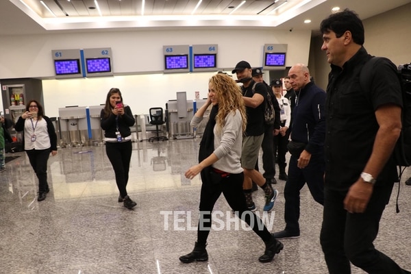 Desde San Pablo, Brasil, la cantante arribó en un avión privado a Buenos Aires, para realizar unas presentaciones como parte de su gira mundial El Dorado. Estaba acompañada por su hermano y sus dos pequeños hijos, Milan y Sasha.