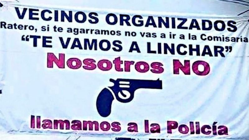 “Ratero, si te agarramos no vas a ir a la comisaría, te vamos a linchar, nosotros no llamamos a la Policía”, amenaza el cartel.