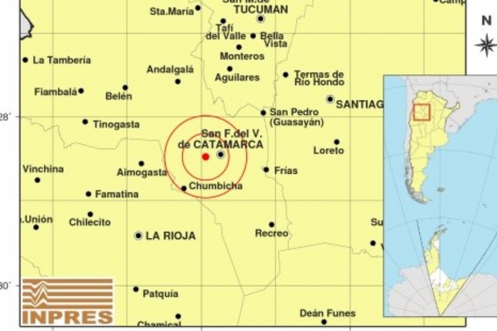 Según informó el Instituto Nacional de Prevención Sísmica (INPreS), el epicentro ocurrió a 20 kilómetros al oeste de la ciudad de San Fernando del Valle de Catamarca, 135 kilómetros al noreste de La Rioja y a 50 kilómetros al noereste de la localidad de Chumbicha, a una profundidad de 8 kilómetros.