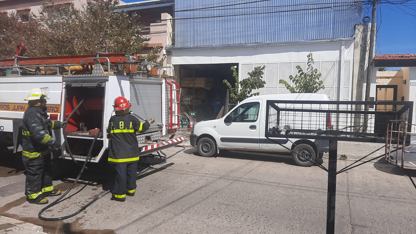Un incendio se registró en un galpón de calle Castelar 1500 donde una casa de venta de repuestos acopia materiales.