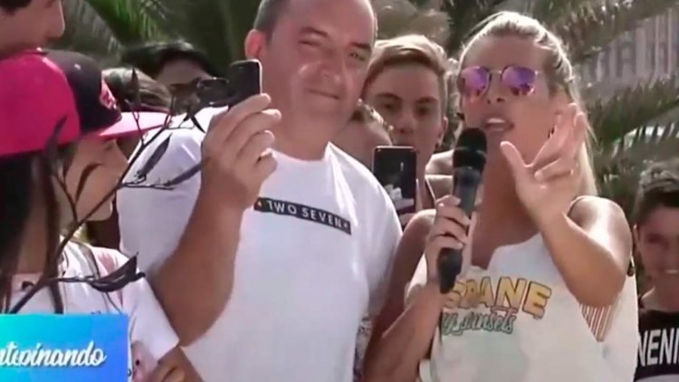Sol Pérez estaba en un móvil desde Mar del Plata par Gente opinando cuando el Pollo Álvarez, conductor del programa, paró la entrevista que estaba realizando con Hernán Drago para centrarse en la actitud de un hombre que estaba de espaldas a la modelo, filmando con su celular.