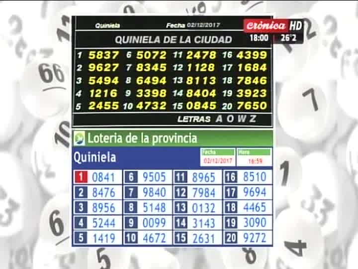 Sorteos de las quinielas de La Ciudad y provincial vespertinas del sábado 2 de diciembre de 2017
