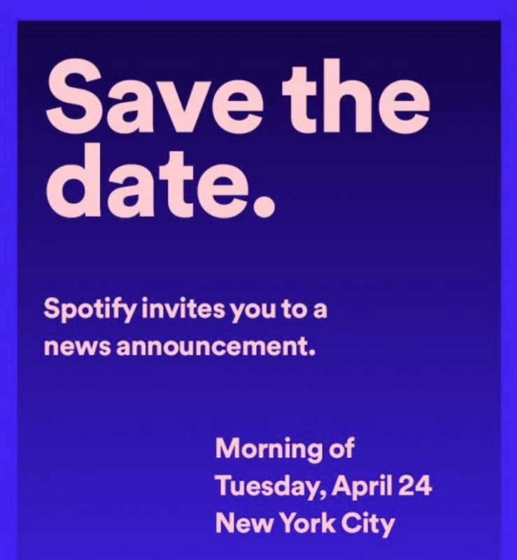 The Verge divulga una invitación que Spotify envió para un evento que se realizará a fines de este mes en Nueva York, más precisamente el día 24 de abril. Si bien en la gráfica no se explicita qué es lo que presentará esta compañía, muchos creen ver señales que apuntan al anuncio de su propio parlante inteligente para competir con propuestas como la serie Echo de Amazon, el HomePod de Apple y los altavoces Home de Google.