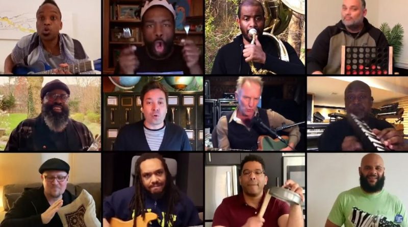 A causa de la cuarentena para frenar el coronavirus , cientos de artistas se dedican a producir shows con el fin de mitigar el encierro y no perder el contacto con sus seguidores. Hasta ahora no se había dado es que una banda brinde un concierto con músicos que tocan cada uno desde su casa. Esta fue la propuesta que unió al presentador de televisión Jimmy Fallon , el legendario bajista Sting , y a The Roots , la banda de hip hop que acompaña a Fallon en cada emisión de The Tonight Show Starring Jimmy Fallon (NBC).