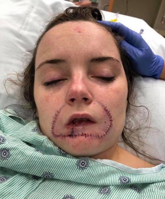 Kayla Hayes, una joven estadounidense, compartió las imágenes de la terrible mutilación que le causó su novio al arrancarle una parte de su labio inferior para “dejar su marca” para su próxima pareja.