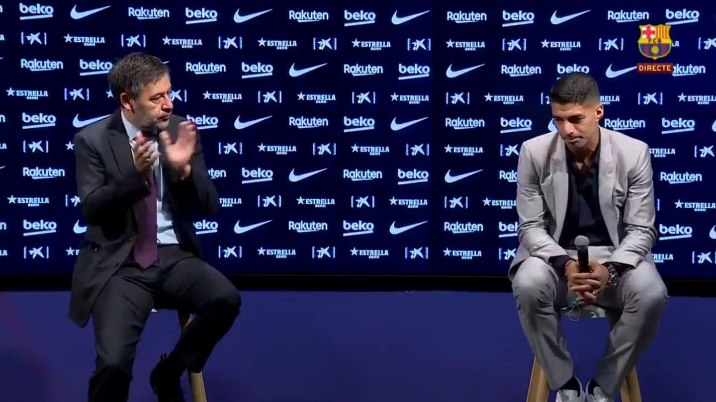 Con lágrimas en los ojos y tras una presentación de la mano del presidente de Barcelona, Josep María Bartomeu, en la que le agradeció por todo y hasta le ofreció tener un partido homenaje en el Camp Nou a futuro, Suárez reveló no estar listo para el momento que lo tomó por sorpresa en su carrera: “No tengo nada preparado porque es todo muy de imprevisto. Estaré eternamente agradecido a Barcelona porque apostó por mí a pesar de cometer un tremendo error. La gente sabe el esfuerzo que hice siempre para poder jugar en el mejor equipo del mundo y tengo que estar orgulloso de todo lo que hice y por llevarme amigos. Me quedo con todo lo lindo: levantar títulos, hacer goles, jugar al lado de grandes jugadores y al lado del mejor de la historia“.