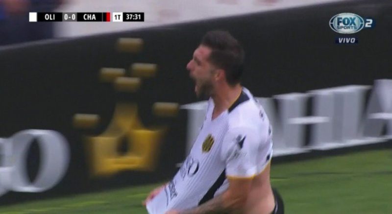 37 minutos. Gol de @Olimpo_Oficial. Tiro libre ejecutado por Pantaleone, el rebote le queda a David Depetris y tras desviarse en Ré pone arriba al “aurinegro” 1 a 0