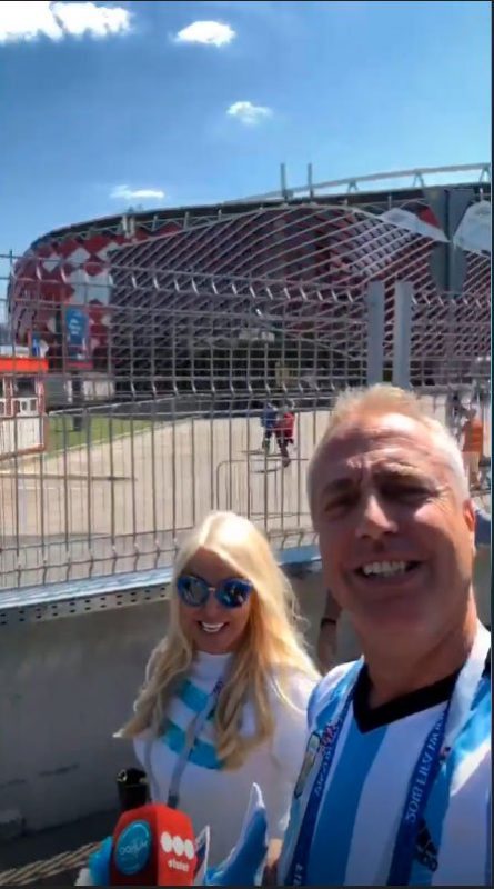 Minutos antes de llegar al imponente estadio ruso, el conductor publicó un video de su hijo, Mirko, también con la camiseta de la Argentina puesta, palpitando por primera vez un Mundial juntos.