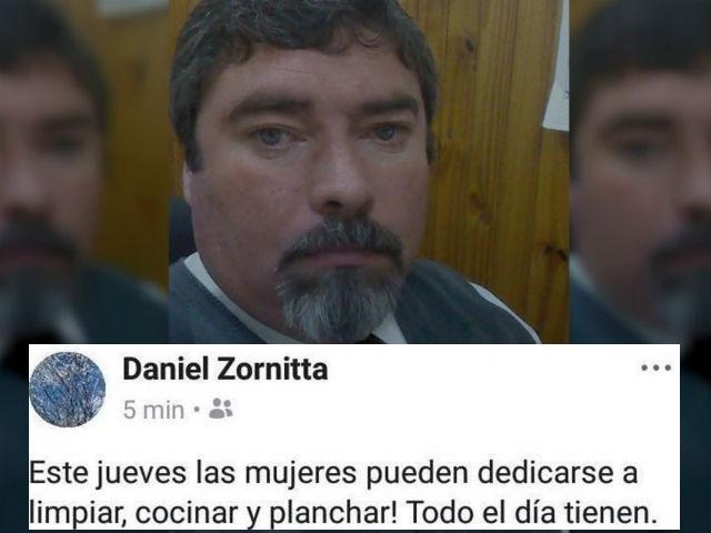 Zornitta fue quien, el 8 de marzo, publicó en su cuenta de facebook que en el Día de la Mujer “deberían ir a lavar, planchar y cocinar” porque “tienen todo el día”.