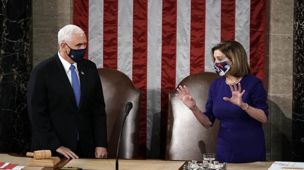 Con una expresión muy seria, el vicepresidente, Mike Pence, presidió la sesión conjunta de las dos Cámaras, en la que los legisladores debían contar y confirmar estado por estado los votos del Colegio Electoral, el órgano que elige formalmente al inquilino de la Casa Blanca.