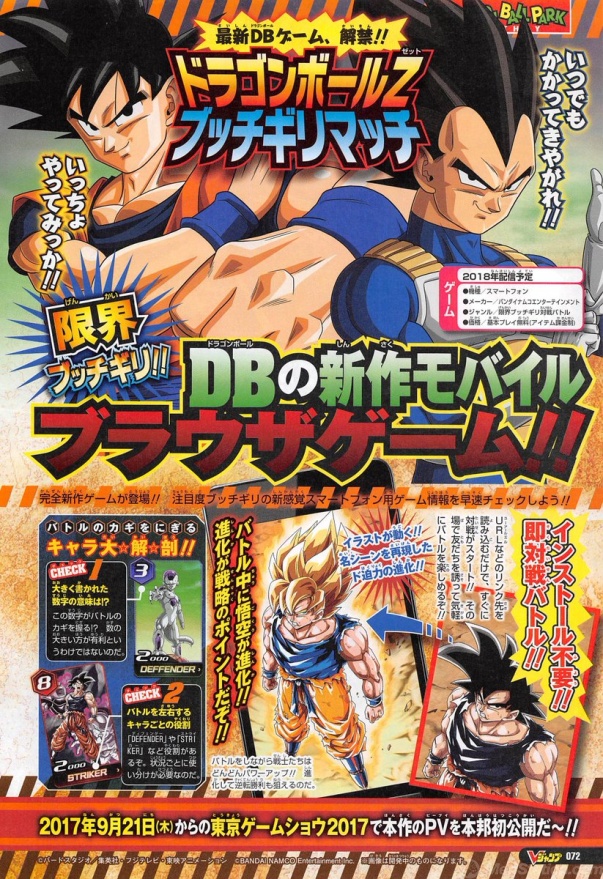 Tecnologia 23 septiembre, 2017 Debora Pedreira Nuevo juego de Dragon Ball para smartphones A falta de pocos días para que comience el Tokyo Game Show 2017 en Chiba, Japón, la revista Read More