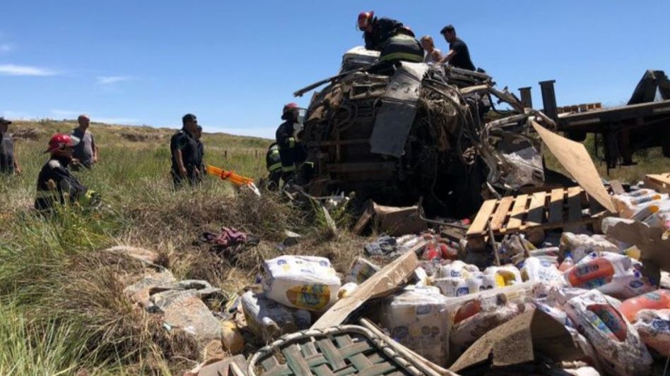 En el camión, que transportaba bebidas en envases de plástico, circulaba una familia oriunda de Misiones. El chofer, de 35 años, debió ser extraído por personal de Bomberos tras quedar encerrado en la cabina.