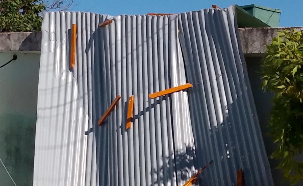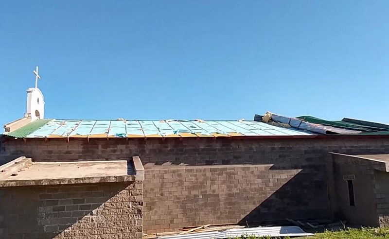 En el barrio Cerro del Sol, la capilla Nuestra Señora del Rosario sufrió la voladura de la mitad de su techo.