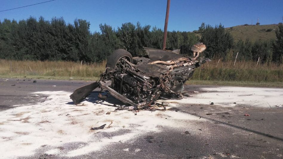 La fuerza de la colisión partió la estructura del automóvil en dos y terminó una parte en la banquina y otra sobre la cinta asfáltica, completamente retorcida.