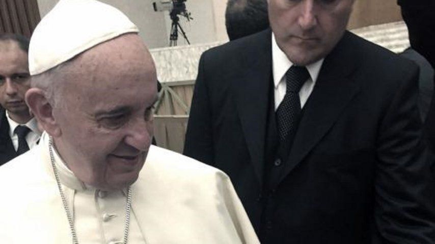 En la imagen se puede ver al Sumo Pontífice con un cartel con la imagen de las islas Malvinas y una leyenda que dice “Es tiempo de diálogo entre Argentina y Reino Unido por Malvinas” al cumplirse 50 años de la resolución de la ONU que insta a la negociación entre ambos países.