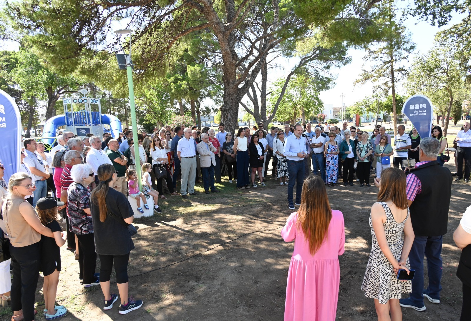 El intendente Federico Susbielles, junto a funcionarios, representantes de instituciones, empresas y vecinos y vecinas, presentó la puesta en valor de la plaza Brown.