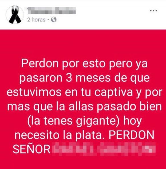 “Perdón por esto, pero ya pasaron tres meses desde que estuvimos en tu auto y por más que la hayas pasando bien, hoy necesito la plata”, dice otro mensaje.