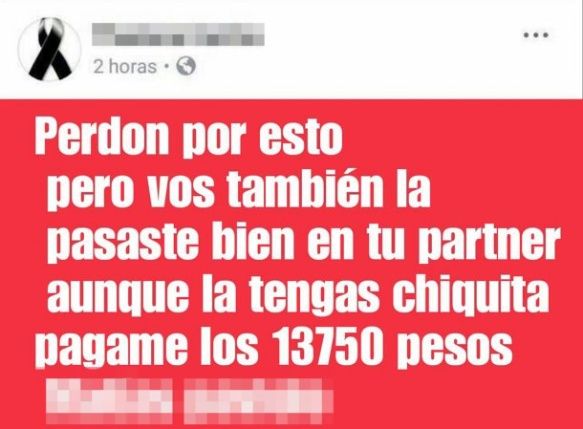 “La pasaste bien en tu Partner, pagame los 13.750 pesos”, reza una de las imágenes que colgó en el muro de la red social”.