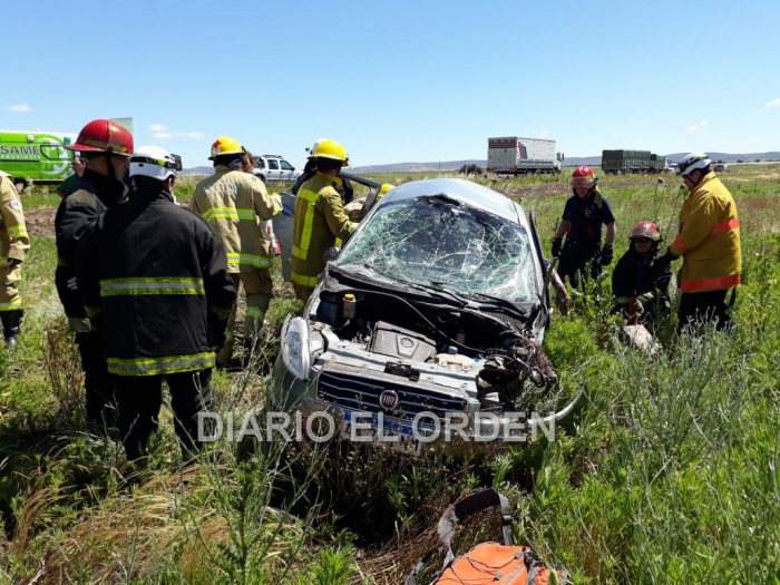 El vuelco fue protagonizado por un Fiat Línea, que al no ser dominado por su conductor, salió violentamente de la cinta asfáltica y quedó en los pastizales de la banquina.