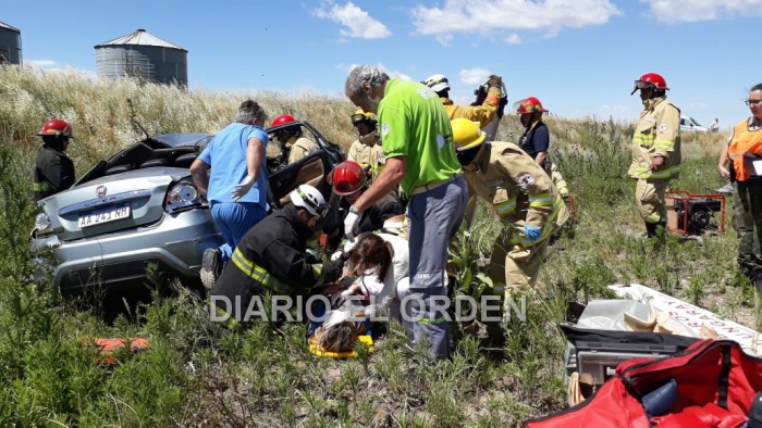 El vuelco fue protagonizado por un Fiat Línea, que al no ser dominado por su conductor, salió violentamente de la cinta asfáltica y quedó en los pastizales de la banquina.