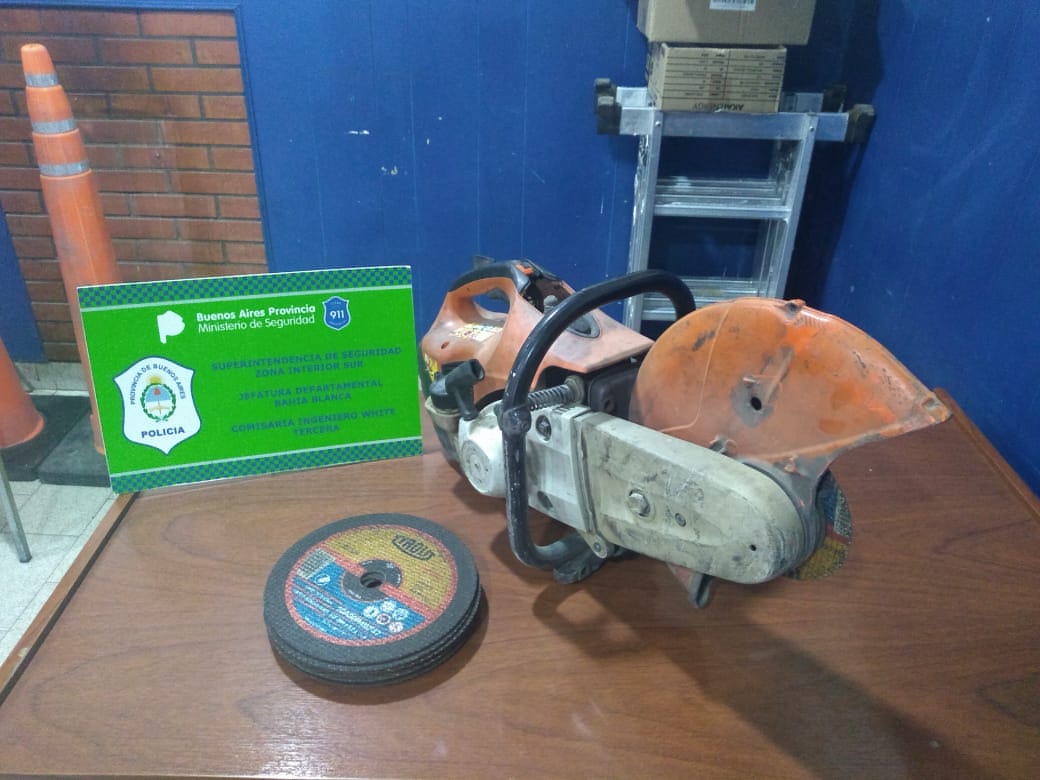 “A raíz de ello los policías detuvieron a los hombres de 34, 46 y 56 años como así también secuestraron diez discos circulares de corte, la amoladora a explosión y un riel de hierro de cinco metros de largo”, agregaron.