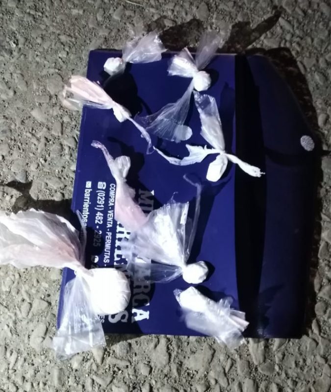 La breve persecución termina en Provincias Unidas casi Lainez, donde identifican al conductor, Emanuel Ferrada, de 22 años, acompañado de una menor de 17 años, a quienes se les secuestró un sobre de plástico azul con siete envoltorios de cocaína para la venta.