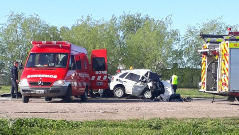 Tres personas, entre ellos dos policías, murieron esta mañana al chocar frontalmente dos autos en la Ruta Nacional 5, en el acceso a la ciudad bonaerense de Carlos Casares, donde también hubo dos heridos graves.