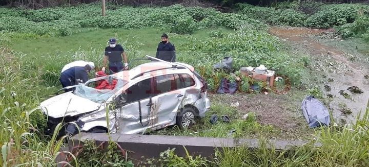 Al llegar a la altura del paraje Pablo Marcado, y en medio de la lluvia que caía en la zona, el automóvil se salió la cinta asfáltica, dio algunos tumbos y volcó sobre un costado.