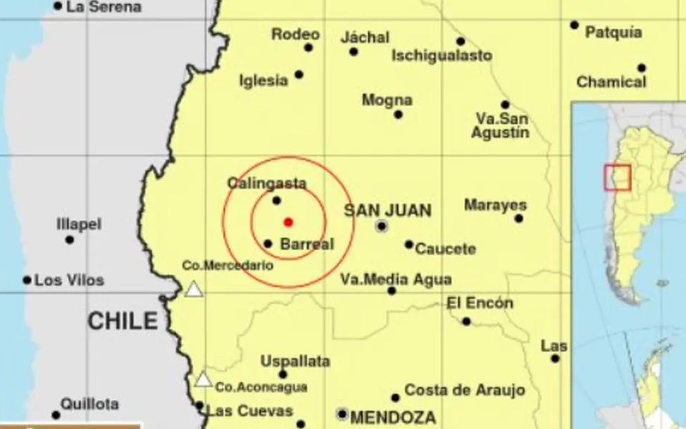 El sismo fuerte, el de magnitud 4, se originó a 32 kilómetros el norte de Caucete a casi 200 kilómetros de la capital de Mendoza.