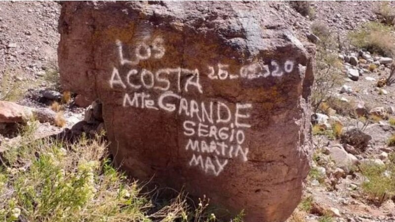 “Los Acosta”, un grupo de personas oriundas de Monte Grande, ciudad del partido de Esteban Echeverría, resolvieron pintar sus nombres en un piedra ubicada en la zona de Picheuta, Las Heras, provincia de Mendoza.